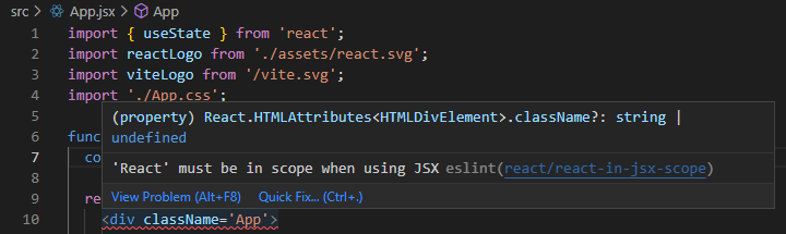 만약 React를 추가하지 않고 빨간 줄을 없애고 싶으신 분들은 .eslintrc.cjs의 rules에 예외처리를 하시면 됩니다.