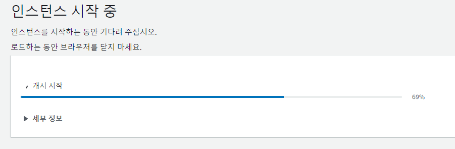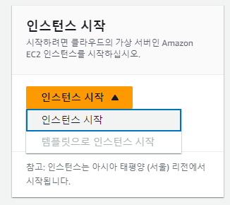 이렇게 설계도를 다 그리고 나면 오른쪽 옆에 인스턴스 시작이라는 강렬한 색깔을 띤 버튼이 보입니다.