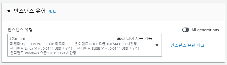 프리티어는 제가 알기로 t2.micro 하나입니다. 혹시 비용에 문제가 없으신 분들은 다른 인스턴스에도 도전해 보세요.