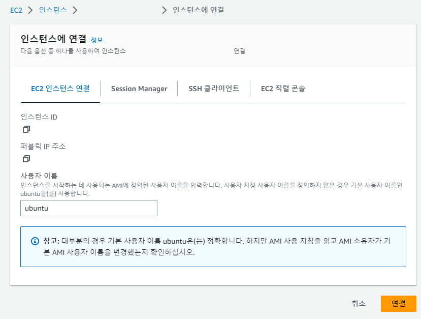 7. AWS 전용 Console을 통해 인스턴스에 연결