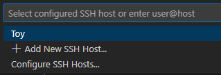 그러면 기존에 Host로 입력했던 "Toy"가 목록에 뜹니다. 클릭해 줍시다.