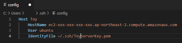 1. Host : vscode에서 접속할 인스턴스 이름입니다. 알아볼 수만 있으면 아무렇게나 적어도 상관은 없습니다.