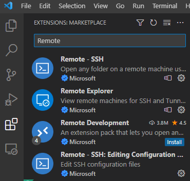* 만약 Remote-SSH가 안 뜨시는 분들은 Extensions에서 Remote - SSH를 설치해 주세요.