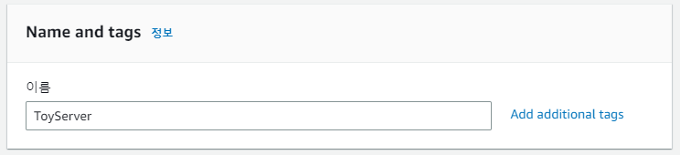 먼저 인스턴스, 그러니까 컴퓨터의 이름을 지어주세요. 저는 간단하게 ToyServer라 짓겠습니다.