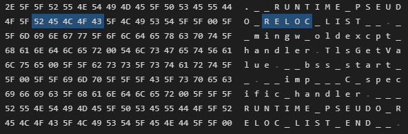 프로그램이 Load 될 때 코드와 데이터를 메모리에 재배치할 위치를 운영체제(OS)에가 알려줍니다. PSEUDO_RELOC로 이루어진 글자들이 보입니다. 나머지 글자들에서도 이 프로그램의 스펙에 대해서 힌트를 담고 있습니다.