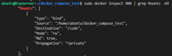 혹시 volume이 어떻게 container와 mount되어 있었는지 확인하려면 docker inspect를 입력하면 됩니다.