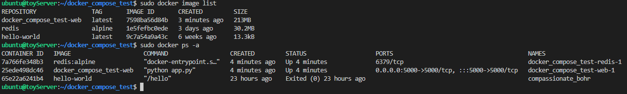 위의 Tutorial을 진행하셨던 분이라면 이미 docker-compose-plugin을 설치하셨을 것입니다. 혹시 install이 안되신 분들은 설치해 줍시다.