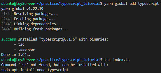 Command 'tsc' not found, but can be installed with:sudo apt install node-typescript