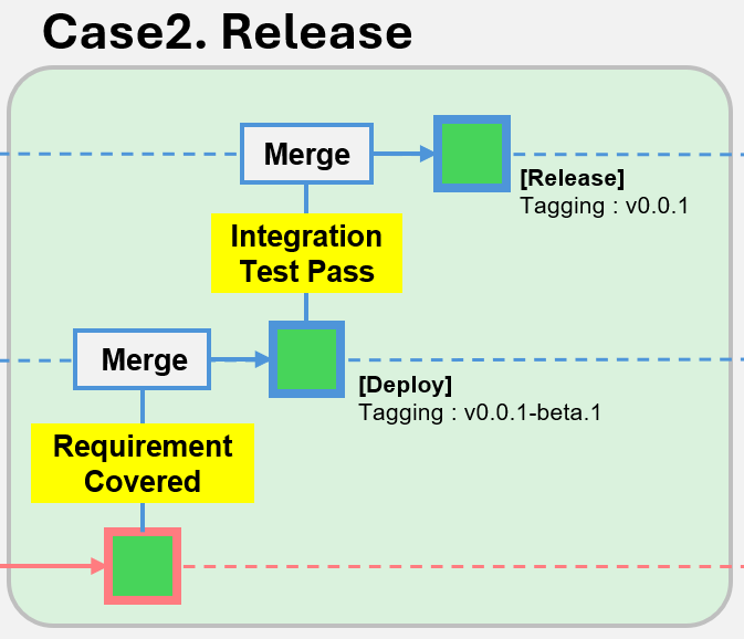 - Deploy Manager는 Release에 필요한 모든 요구사항이 적용되었는지 확인 후 staging branch 반영 여부를 정한다.