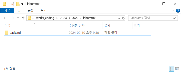 Project Folder의 이름을 laboratrix라 하고 그 안에 backend 폴더를 생성합니다.
