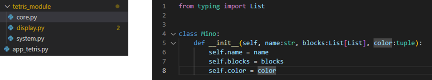 * Tetris 객체 안에서 요소들이 혼잡한 형태라는 것만 파악하셔도 충분합니다.