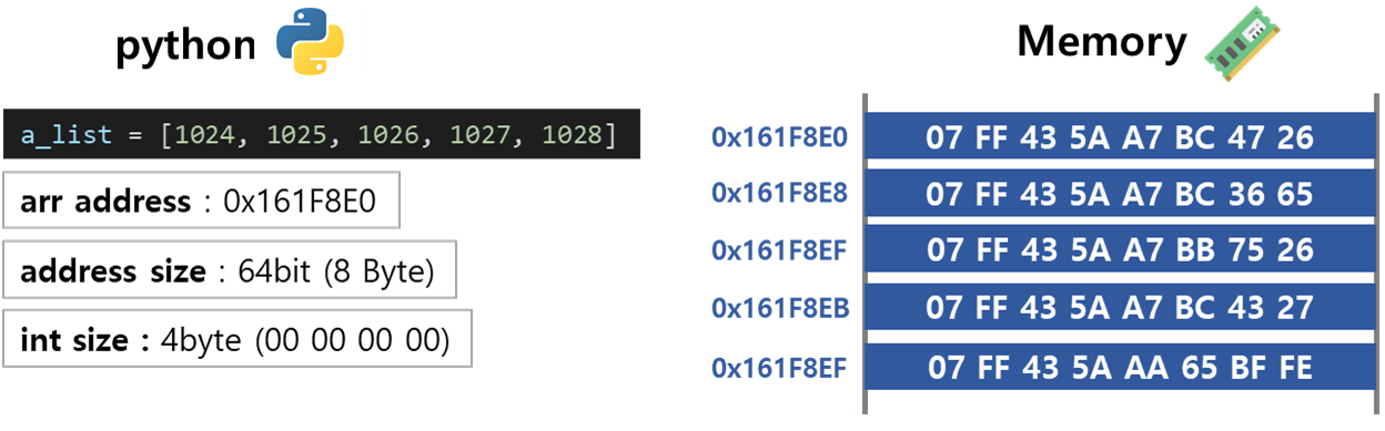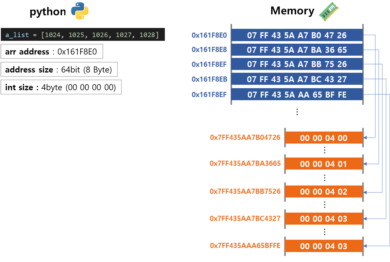 **ob_item 덕분에 Python List는 주소값을 저장한 배열이라는 것을 쉽게 알 수 있습니다.