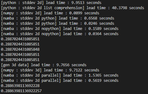 r4 = nbm.calculation_stddev_2d_nopython(raw_2d_data) ## compile time + runtime