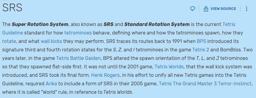 이번 시간에는, 다시 처음으로 돌아가 https://tetris.fandom.com/wiki/Tetris_Wiki의 문서를 분석하고자 합니다.