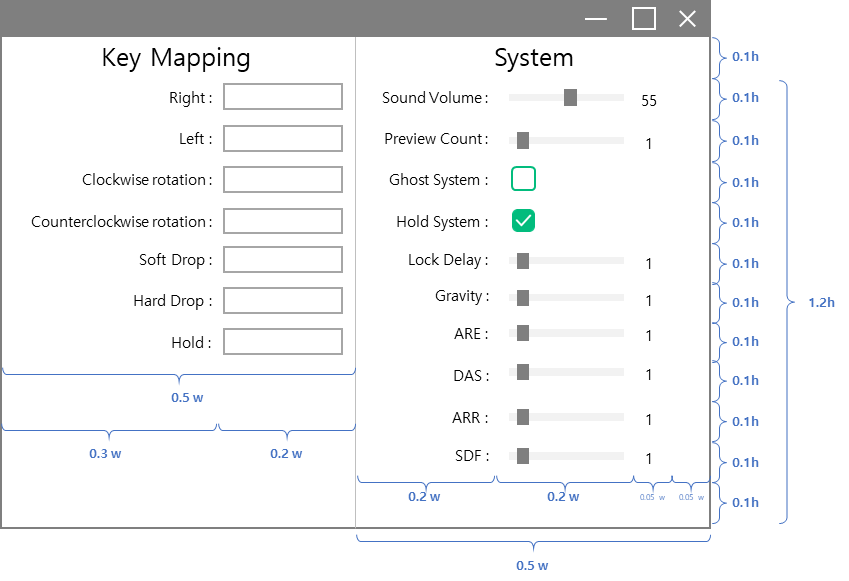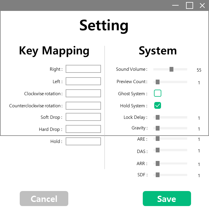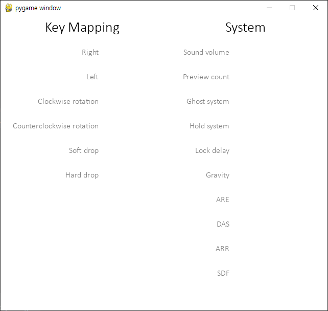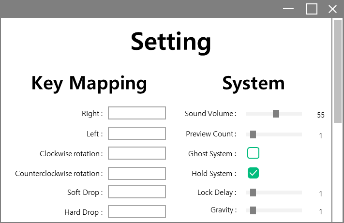 이정도 설정값을 만질 수 있다면 테트리스 설정으로 충분할 듯 합니다.