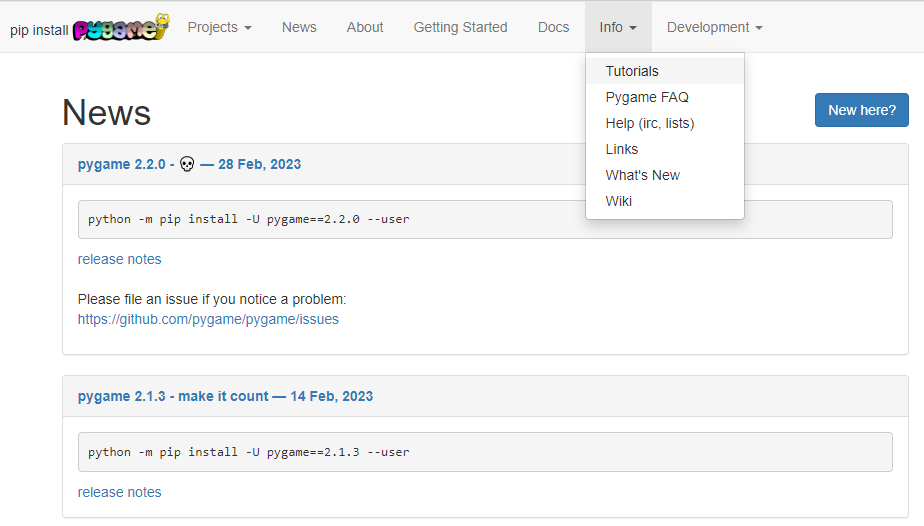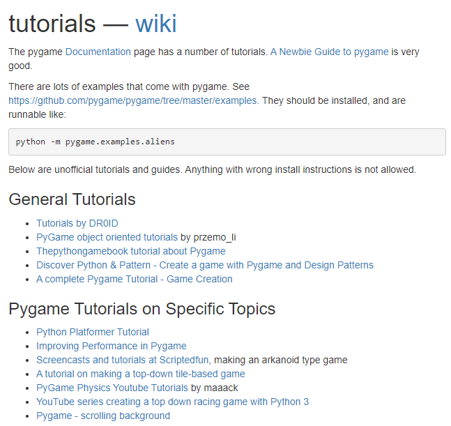 pygame까지 설치한 것은 좋았는데, 이제 어떻게 할까요? 새로운 library를 봤으면 유튜브나, 구글 문서를 확인해 보는 것도 좋지만, 공식 Site에서 보여주는 Tutorial을 참조하는 것도 좋은 습관입니다.
