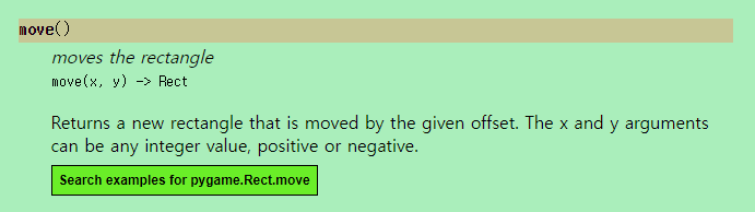 pygame에서의 move함수는 옮겨진 rect를 return 합니다. 이 함수를 활용해서 move함수를 만들어줍니다.