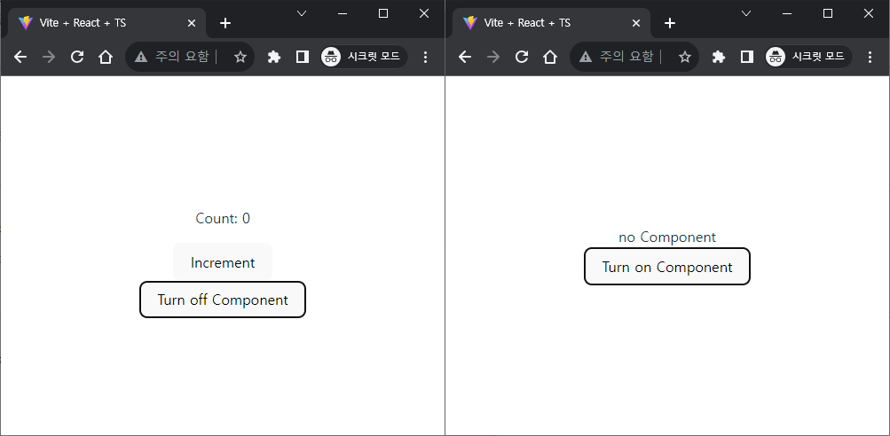 그리고 이번에는 ExampleComponent를 생성하고 소멸시킬 수 있도록 해보겠습니다.