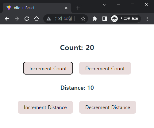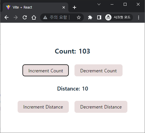 그렇다면 하나의 setCount만 동작하는 듯한 결과를 보여줍니다.