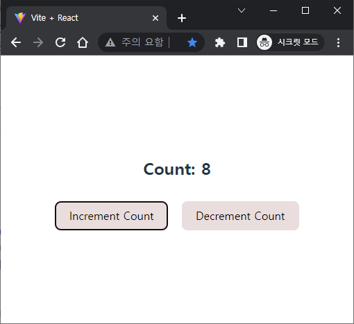 3. setCount를 사용할 함수를 만들어 줍시다. increment와 decrement 함수를 만들겠습니다.