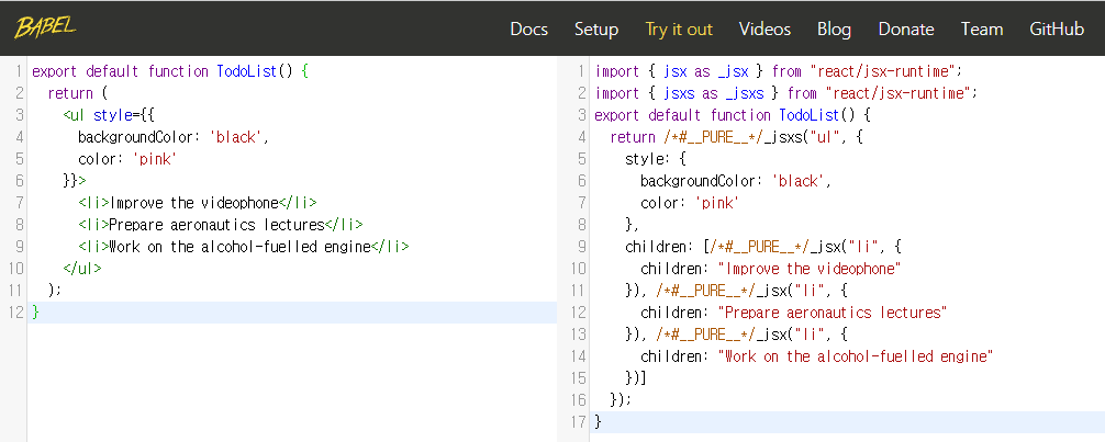 그렇다고 모든 web 구성요소를 jsx만으로 작성해야 한다는 것은 아닙니다. 개발방향성에 따라 css, html, js를 얼마든지 섞어서 사용할 수 있고, 더군다나 browser는 jsx문법을 이해하지 못하기 때문에 결국 javascript로 변환을 한번 거쳐야 합니다.