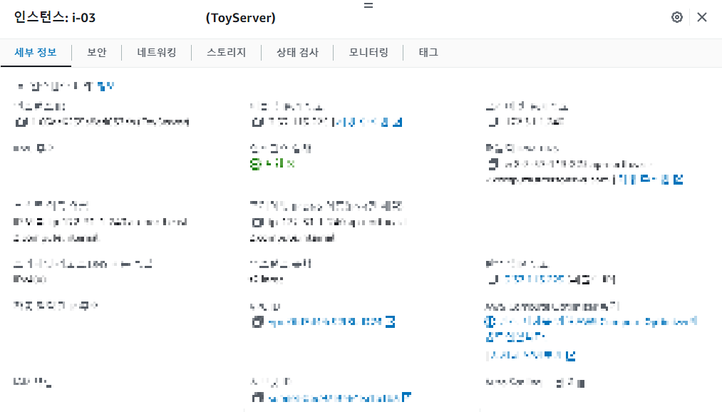 인스턴스 ID를 클릭하면 인스턴스의 세부정보를 확인할 수 있습니다.