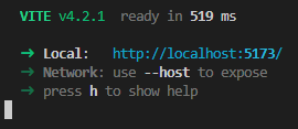 끝났습니다! 이제는 yarn을 통해 react server를 실행시켜 볼 차례입니다. vite이 알려준 대로 해보도록 합시다.