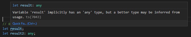 javascript랑 다르지 않게 됩니다. 모든 유형 검사를 뛰어 넘습니다. 만약 typescript에서 변수에 type을 지정하지 않는다면 자동으로 any유형을 사용하게 됩니다.