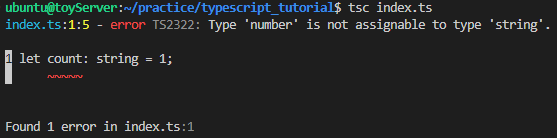 이 상태에서 tsc를 동작하면? 어디서 에러가 생겼는지 잡아줍니다.