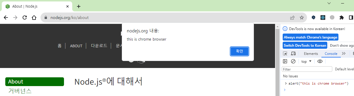 | 예시 코드 | const fs = require('fs'); | alert("this is browser") |